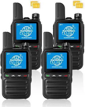 KAYOTOM Lifetime Free Unlimited Range Rapid Global Walkie Talkies PTT Push-to-Talk Over Cellular Nationwide 5000+ Miles POC 4G LTE Handheld Long Range Two Way Radio for Team Management (4Pack and SIM)