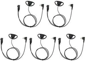 D Shape Clip-Ear Headset Earpiece PTT with Mic Compatible with Motorola Two-Way Radio CLS1410 RMM2050 GP300 CP200 PR400 CLS1110 (5 Pcs)