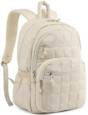 CLOKARS College Bookbag for Women, 17.3in Laptop Backpack Quilted Backpack Puffer for Travel Work Casual Daypack, School Backpack for Teens, Beige