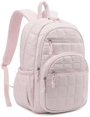 CLOKARS Bookbag for Women, Teen Girls Backpack for High School College Student, Puffer Quilted Back Pack Cute Laptop Backpack 17.3in for Work Travel Mom Casual, Pink
