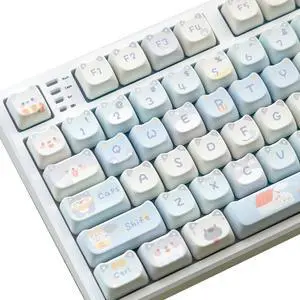 daixiahu Mao Height Cat Shape Theme keycaps PBT keycaps Customized keycap Set Suitable for 61/87/104/108 Cherry MX Switch and Other Mechanical Keyboards (Blue)