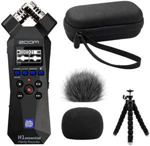 Zoom H1essential Handy Recorder Bundle with 99KOLB Accessories(EVA Case, Furry & Foam Windscreens Set, Octopus Tripod)