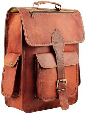 HULSH 16 Inch Genuine Leather Backpack for Women and Men - Retro Vintage Laptop Backpack