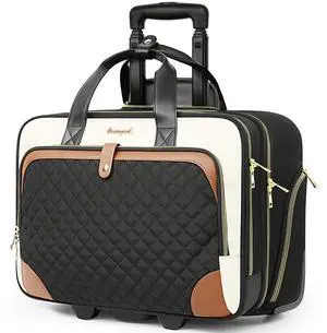 Arcoyard Rolling Laptop Bag, Large Rolling Briefcase for Women with Waterproof Pocket, 17.3 Inch Computer Bag Laptop Case with Wheels, Roller Work Bag for Office Travel Business Teacher, Beige Brown
