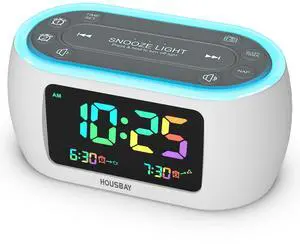 HOUSBAY Glow Small Colorful Alarm Clock Radio with Rainbow Digit, 7 Color Night Light with ON/Off Options, Dual Alarm, Dimmer, FM Radio with SleepTimer for Bedrooms