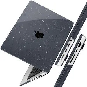 TWOLSKOO for MacBook Pro 14 inch Case M5 M4 M3 M2 M1 Pro Max Chip (2026-2021), Plastic Hard Shell & Keyboard Cover & Type C Adapter & Screen Protector, Glitter Black