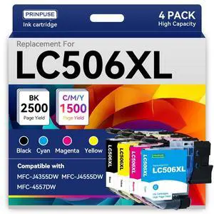 PRINPUSE LC506XL Ink Cartridges 4 Pack Compatible Replacements for Brother LC506 LC506XL for Brother Printer MFC-J4355DW MFC-J4555DW MFC-4557DW
