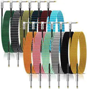 Rigibright 12 Pack 10FT Instrument Cable - Guitar, Bass, Keyboard, Microphone & Mixer Amp Cord (Multicolored-A, 10 Feet)