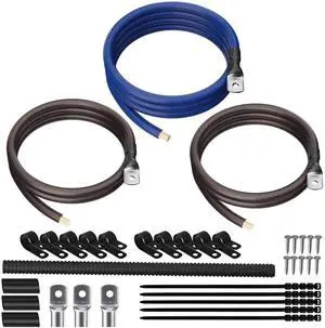 Big 3 Upgrade Electrical Wiring Kit, True Spec Oversized 1/0 AWG Gauge CCA Amp, High Output Complete Battery Ground&Power Wire Update for Automotive Car Audio Systems-UL Listed-Blue/Brown