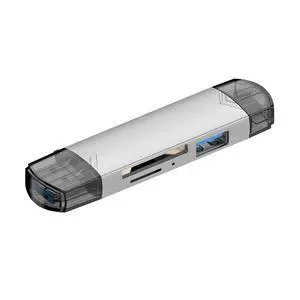 USB 3.0 multi-functional card reader - type-c for Android phones, computers, OTG (On-The-Go) devices, cameras, SD/TF/USB drives Six-in-One Aluminum Card Reader - Silver Color