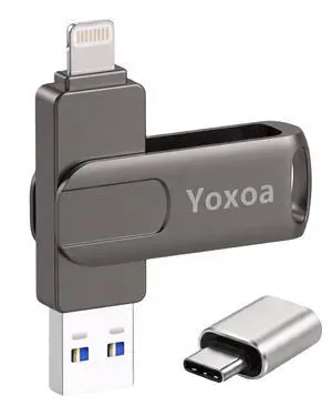 MFi Certified Photo Stick 256GB USB Flash Drive for iPhone, 4 in 1 External Memory Thumb Drive for Picture Video Backup, High Speed Memory Stick Pen Drive for iPhone/iPad/Android/PC (Gun Black)
