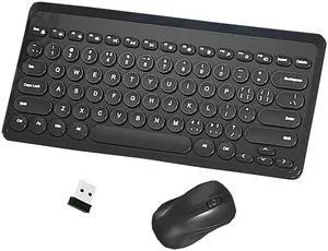 Keyboard and Mouse Combo,2.4G Wireless 79 Cute Round Keys Small Keyboards Silent and 1600 DPI Optical Mice Set (Black)