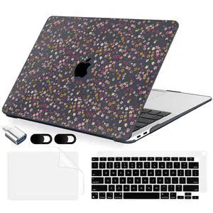 MecBevia Compatible with MacBook Air 13.3 inch Case 2021-2018 Release A2337 M1 A2179 A1932 Touch ID, Plastic Hard Shell&Keyboard Cover&Screen Protector&Webcam Cover&Type-C Adapter, Tiny Floral