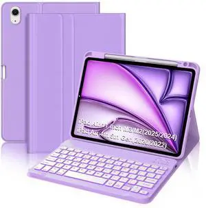 KVAGO iPad Air 11 inch Case with Keyboard (M3 2025 / M2 2024) & Air 5th 4th Generation case, 7 Colors Backlit Bluetooth Keyboard Cover with Pencil Holder for Air 5th 4th Generation,Purple