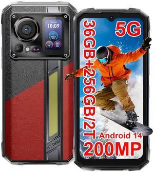 HOTWAV Hyper 7 Pro 5G Rugged Phone, 36GB + 256GB/2TB Android 14 Waterproof Phone, 6.6"FHD+ 2K Display Cell Phone, 10800mAh Battery, 200MP + 32MP Camera, Octa Core, Dual Sim, NFC, OTG, 120Hz, 33W, GPS