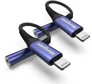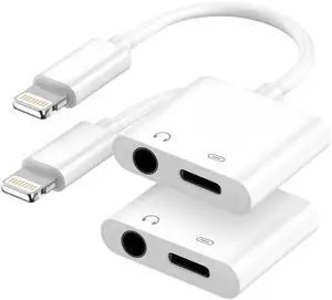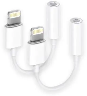 2 Pack Lightning to 3.5 mm Headphone Jack Adapter, iPhone Aux Adapter Converter Dongle Audio Cable Compatible with iPhone 14 13 12 11 X XS 8 7