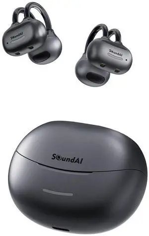 SoundAI A3 Open-Ear Earbuds, Bluetooth Wireless Headphones, Lightweight Sports Headphones for Running, Comfortable, Secure Fit, Sweat Resistant, Built-in Mic, AI Translation Feature(Gray)