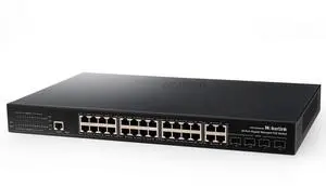 MokerLink 24 Port PoE Gigabit Managed Switch, 4 GE Uplink, 4 Combo SFP, 300W IEEE802.3af/at, L2+ Smart Managed, Rackmount Fanless, PoE QoS Vlan IGMP and Static Routing Managed