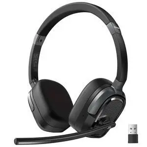 TECKNET Wireless Headset with USB Dongle, Bluetooth Headset with Noise Cancelling Mic - Rechargeable Bluetooth V5.2, 50H Playtime & Mic Mute, On Ear Headphones for Trucker/Remote Work/Call Center