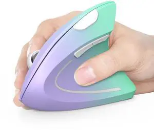 TECKNET 2.4G Ergonomic Mouse Vertical Wireless - 4800 DPI Optical Carpal Tunnel Mice Right Hand, 4800 DPI Adjustable, Quiet Clicks, 6 Buttons for Laptop, Desktop, PC, Computer - Green Purple