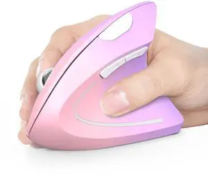 TECKNET Ergonomic Mouse, Bluetooth Wireless Vertical Mouse, Rechargeable Battery, Quiet Clicks, 4800 DPI Adjustable, BT5.0/3.0 & 2.4G Connect, Easy to use, Wide Compatibility - Pink