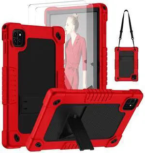 JBuwsdan for Callsky-Tab Cpad 10 / Callsky-Tab Ctab 10 10.1 inch Tablet Case Kids Shockproof Cover with Kickstand Shoulder Strap and 2 Pcs Tempered Glass Screen Protector (RedBlack+2Pcs)