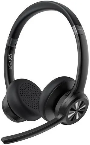 TECKNET Wireless Headset, Bluetooth Headset with Noise Cancelling Microphone - Rechargeable Bluetooth V5.2 Headphones, 50H Playtime & Mic Mute, On Ear Headphones for Trucker/Remote Work/Call Center