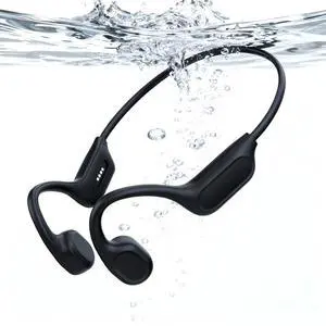 QMHL Swimming Headphones - Bone Conduction Bluetooth 6.0 Open Ear Sports Headset, IP68 Waterproof Built-in MP3 Player 32G Memory, for Running, Cycling (Black)