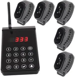 LOUKIENE Wireless Restaurant Pager System, 5 Wrist Watch Receivers 1 Transmitter, A Chef Paging Waiter's Calling System Transmitter Servers for Hotel Kitchen Bar Coffee Clinic Hospital