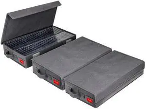 NUSWOR Upgrades Cassette Tape Storage Box - Dust-proof Cassette Racks with Lid - Audio Cassette Holder Pack of 3- Holds 144 Cassette Cases - 16.34 x 9.25 x 3.4 Inches - Grey