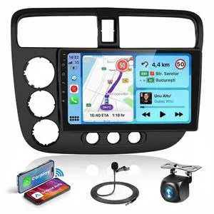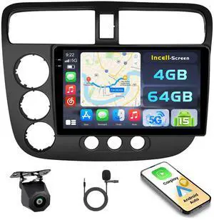 [4+64G] Android 15 Car Stereo for Honda Civic 2001-2005, Hikity 9'' in-Cell Touchscreen Civic Radio Wireless Carplay Android Auto 5G WiFi/Bluetooth/Mirror Link GPS SWC FM/RDS/EQ Backup Cam+Mic