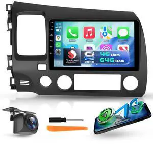 4+64GB for Honda Civic 2006-2011 Android 15 Car Stereo 10.8" Touchscreen Wireless Carplay Android Auto DSP Bluetooth GPS Navigation FM with Free Reverse Camera