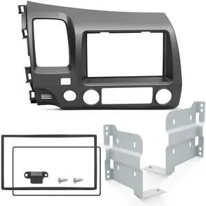 DKMUS Double Din Radio Stereo Dash Install Mount Trim Kit for Honda Civic 2006-2011 with Wiring Harness Antenna Adapter