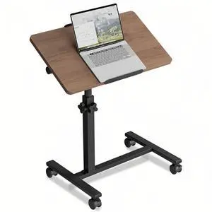 alentar Large-Size Portable Laptop Rolling Desk with Wheels, Adjustable Height and Tilt Top Stable Mobile Over-Bed Table for Home Use - Brown