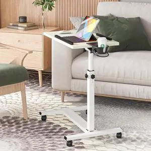 Tribesigns Small Portable Desk with Power Outlet, Height Adjustable Sofa Couch Bedside Laptop Table with Wheels, Mobile Standing Desk Rolling Computer Cart C Side Table with USB Ports