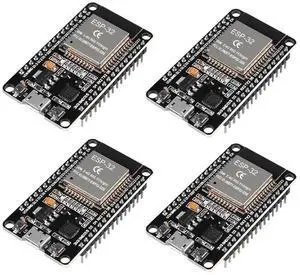 4PCS ESP32 Development Board ESP-32S NodeMCU Board ESP-WROOM-32 WiFi Microcontroller 2.4GHz 2 in 1 Dual-Core WiFi + Bluetooth Processor Integrated Chip CP2102 Low Power Consumption ESP-32S