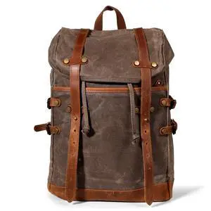 Cymtaml Waxed Canvas Leather Hiking Travel Waterproof Backpack for College Weekend Travel Fit 15in laptops