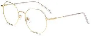 Firmoo Polygon Blue Light Blocking Glasses for Woman Men, Gold Blue Light Filter Computer Glasses Reduce Eyestrain Headache Metal Glasses