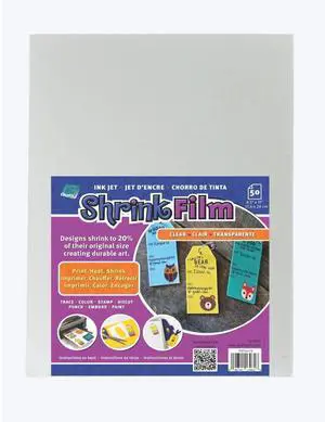 Grafix Ink-Jet Printable Clear Transparent Shrink Film - 8.5"x11" Print, Cut and Shrink It to Create Jewelry, Embellishments, Tags,Ornaments. Shrink Plastic is for Kids of All Ages,Pack of 50 Sheets
