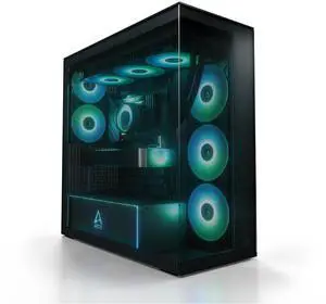 ARCTIC Xtender (Black) - PC Case, Tempered Panorama Glass, 2 x 420 mm Radiator Support, Full Tower, Big Tower, E-ATX, 5X A-RGB Fans pre-Mounted - Black