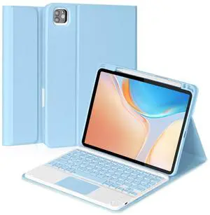 Eisuiyi Keyboard Case for iPad Pro 11" M4 2024, Detachable Touchpad BT Keyboard, Magentic Protective Cover with Pencil Holder, Full Protection, Sky Blue