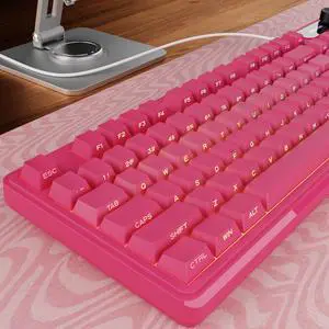 EWEADN V102 Wired Keyboard, 98 Keys Creamy Gaming Keyboard with Number Pad, Display Screen & Media Knob RGB Silent Wired Cute Computer Keyboard for Laptop PC Gamer - Dark Pink