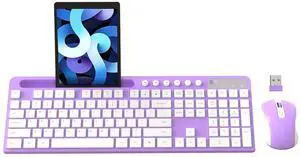 Wireless Keyboard and Mouse Combo, MARVO 2.4G Ergonomic Wireless Computer Keyboard with Phone Tablet Holder, Silent Mouse with 6 Button, Compatible with MacBook, Windows (Purple)