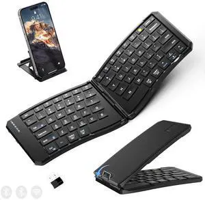 Ergonomic Foldable Keyboard, Portable Folding Travel Bluetooth Keyboard for Business and Travel, 3 Devices Dual-Mode(2.4G+BTx2) Ultra Slim Wireless Keyboards for Windows, iOS, Android, Use on the Leg