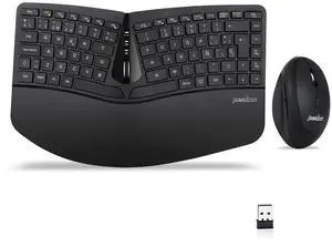 Perixx Periduo-605, Wireless Ergonomic Split Keyboard and Vertical Mouse Combo, Adjustable Palm Rest and Membrane Low Profile Keys, Black, US English Layout (11633)