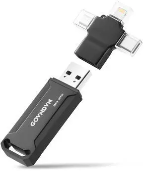 USB 3.0 Flash Drive 64gb for iPhone, 3in1 External Memory Picture Keeper Storage Stick for Photo, V6.05High Speed Thumb Drives for iPhone/iPad/Android/PC - Muddy-Gray