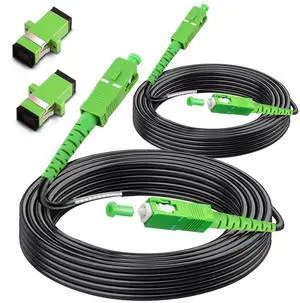 Bangun (15m - 2Pack) SC/APC to SC/APC Fiber Optic Internet Cable, Outdoor Armored Single Mode Patch Cable, Fiber Optic Jumper Optical Patch Cord - SIMPLEX - 9/125um - OS1/OS2 Compatible, LSZH Black