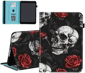 smauncucn Case for Samsung Galaxy Tab S9 FE 5G 10.9 Inch/Tab S9 11 Inch 2023,Wallet PU Leather Folio Cover Multi-Angle Stand with Auto Wake/Sleep,Skull and Rose