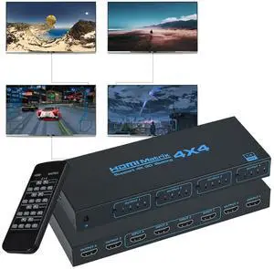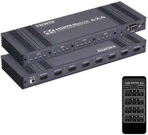 Groza HDMI Matrix Switch 4x4, 4K HDMI Matrix 4 in 4 Out Switch Splitter Box with IR Remote Control and 3 Control Mode, Support RS232 Control, Support Ultra 4K@30Hz, 3D, HDMI 1.4, HDCP 1.4