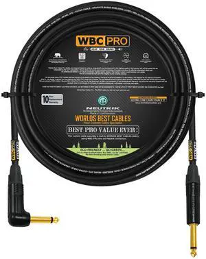 3 Foot - WBC-PRO-Guitar 20 AWG - Low-Cap (18pF/ft) Pro-Grade Graphite-Based - Dual-Shielded Guitar, Bass, Instrument Cable with Neutrik Straight to Angled Inch (6.35mm) Gold TS Connectors